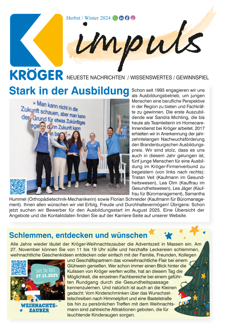 Die 2. Ausgabe unseres neuen Newsletters ist da! Die 4-seitige Broschüre erscheint ab sofort vierteljährlich – hier „Herbst 2024“.